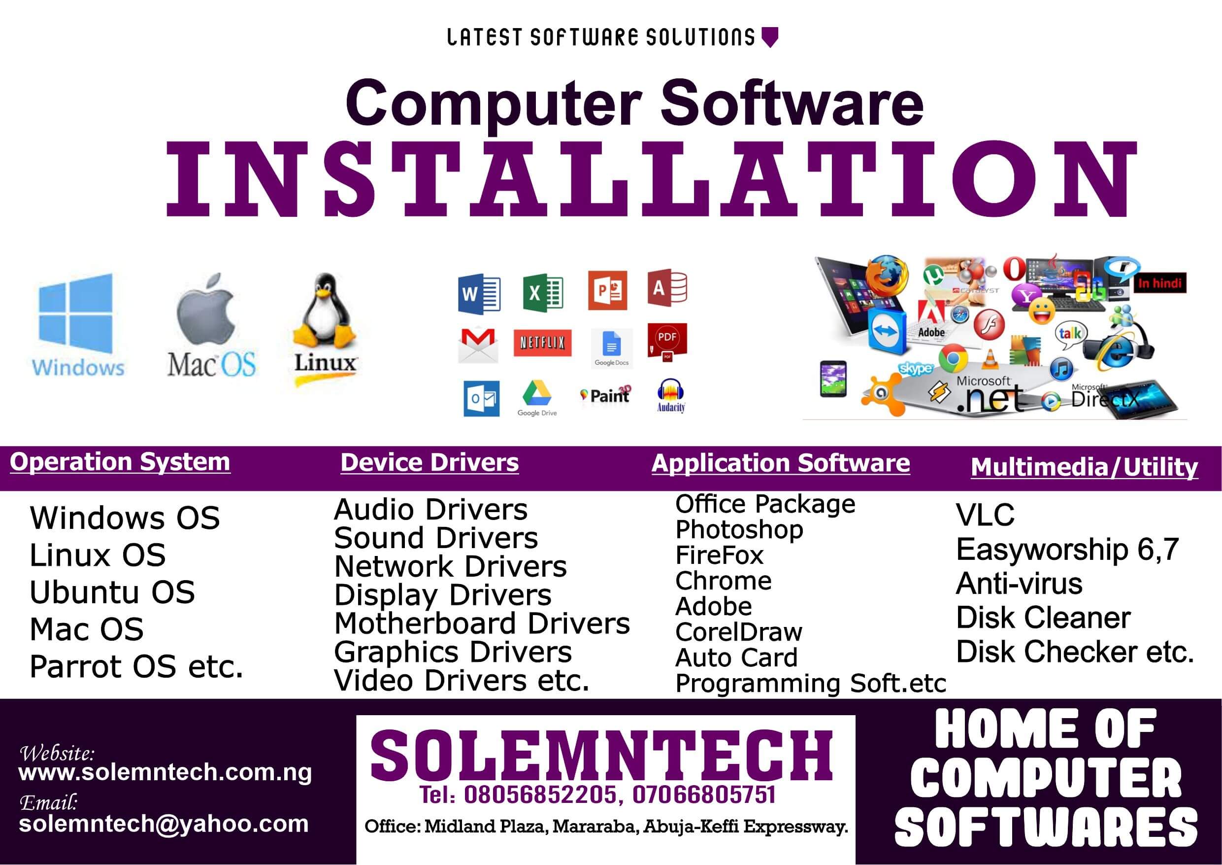 Installing the Best and Latest Software in your computer system, updating it with the best and latest software is essential for performance, security, and productivity. From operating system (OS) software like Windows, macOS, Ubuntu, Parrot or Linux to business applications such as Microsoft Office, accounting tools, and security programs, installing the right software ensures your business runs smoothly. Regular updates and proper installation not only improve efficiency but also protect your system from threats and downtime.